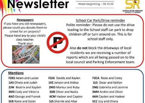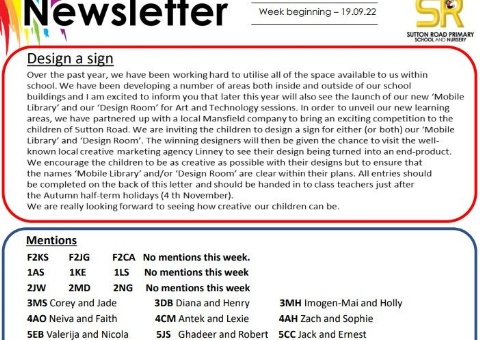 23/09/22Newsletter week autumn 1 week 2Please find our latest newsletter attached below. Read Full Story